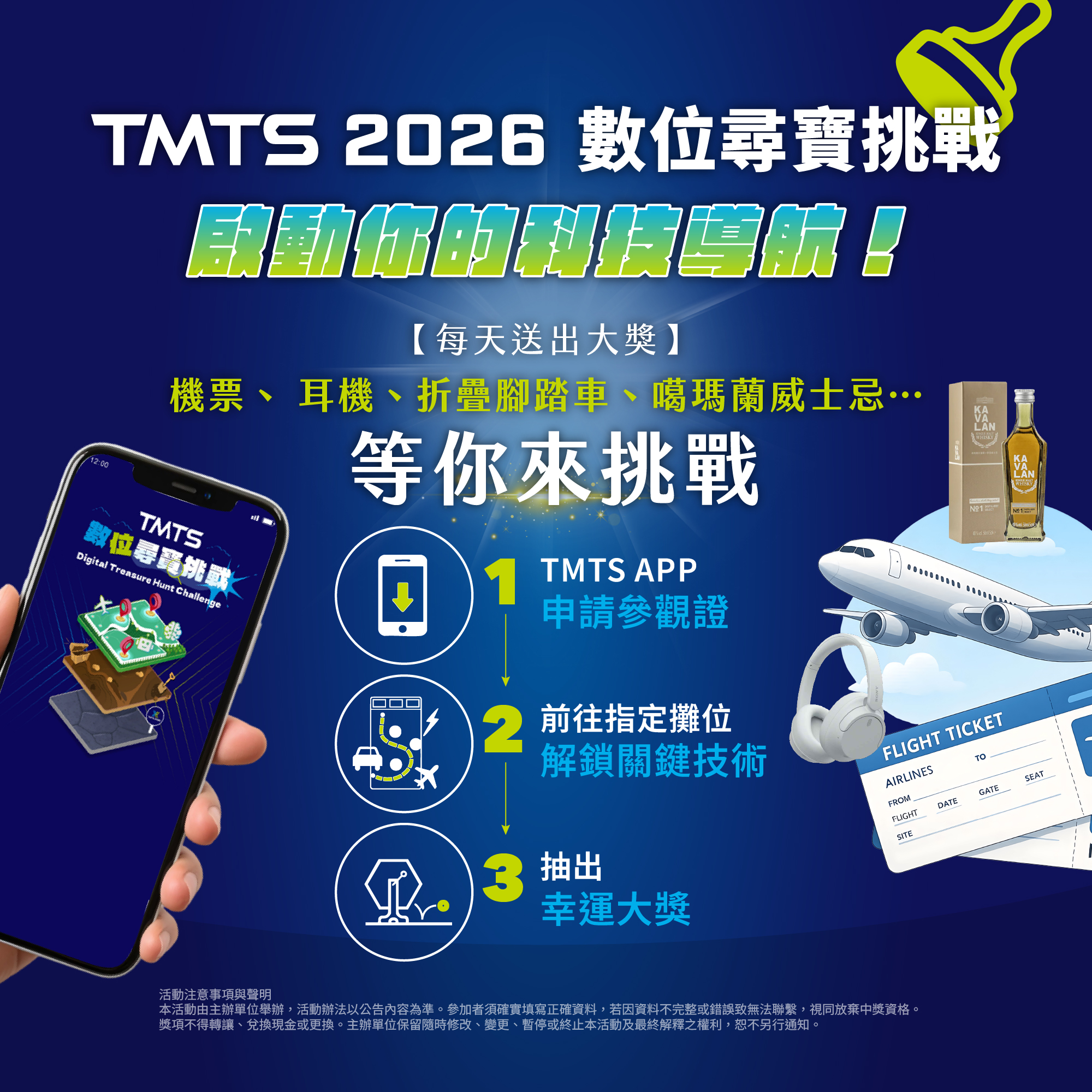 TMTS 2026は、世界中の製造業パートナーの皆様をデジタル・トレジャーハントへとお招きし、AI時代における台湾工作機械産業の卓越した実力と革新的なエネルギーを共に体感していただけることを願っております。